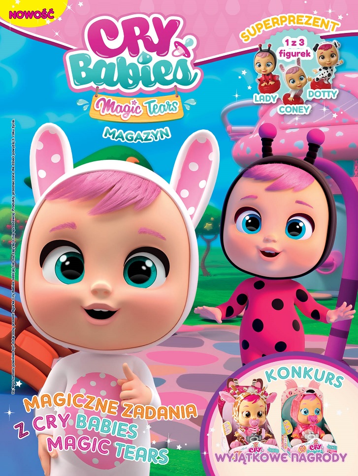 „CRY BABIES. Magic Tears. Magazyn” (wyd. Media Service Zawada) to 28 stron pełnych przygód, kolorowanek, pysznych przepisów, majsterkowania, opisów świata zwierząt i kreatywnych gier, do zabawy w towarzystwie małych przyjaciół z magicznymi łzami. Do magazynu dołączona jest 1 z 3 figurek z bohaterkami Cry Babies. W sprzedaży od wtorku 19 kwietnia br. w cenie 12,99 zł.