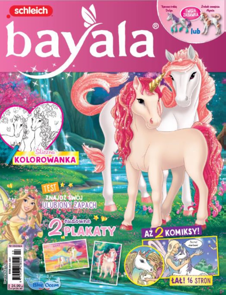 Ukazało się nowe wydanie magazynu „Bayala Schleich“ (wyd. Blue Ocean Entertainment)  z dwoma pięknymi i kolorowymi figurkami do wyboru: Tęczowego źrebięcia Dalya lub Źrebaka szczęścia Allysia. Cena 24,99 zł.