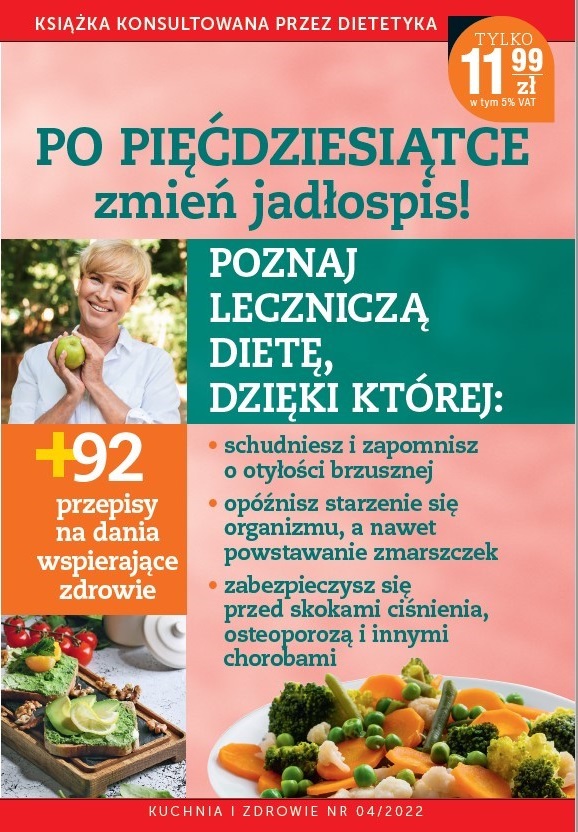 Kolejne wydanie „Kuchni i zdrowia” (wyd. Ringier Sxel Springer Polska) ukaże się w czwartek 3 listopada br. Będzie to poradnik „Po pięćdziesiątce zmień jadłospis”. Cena 11,99 zł.